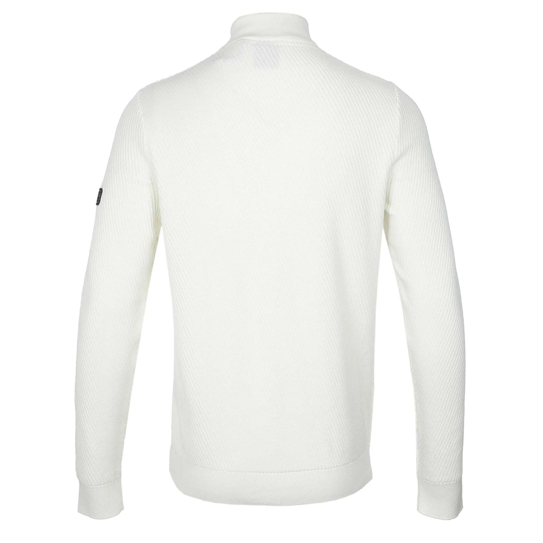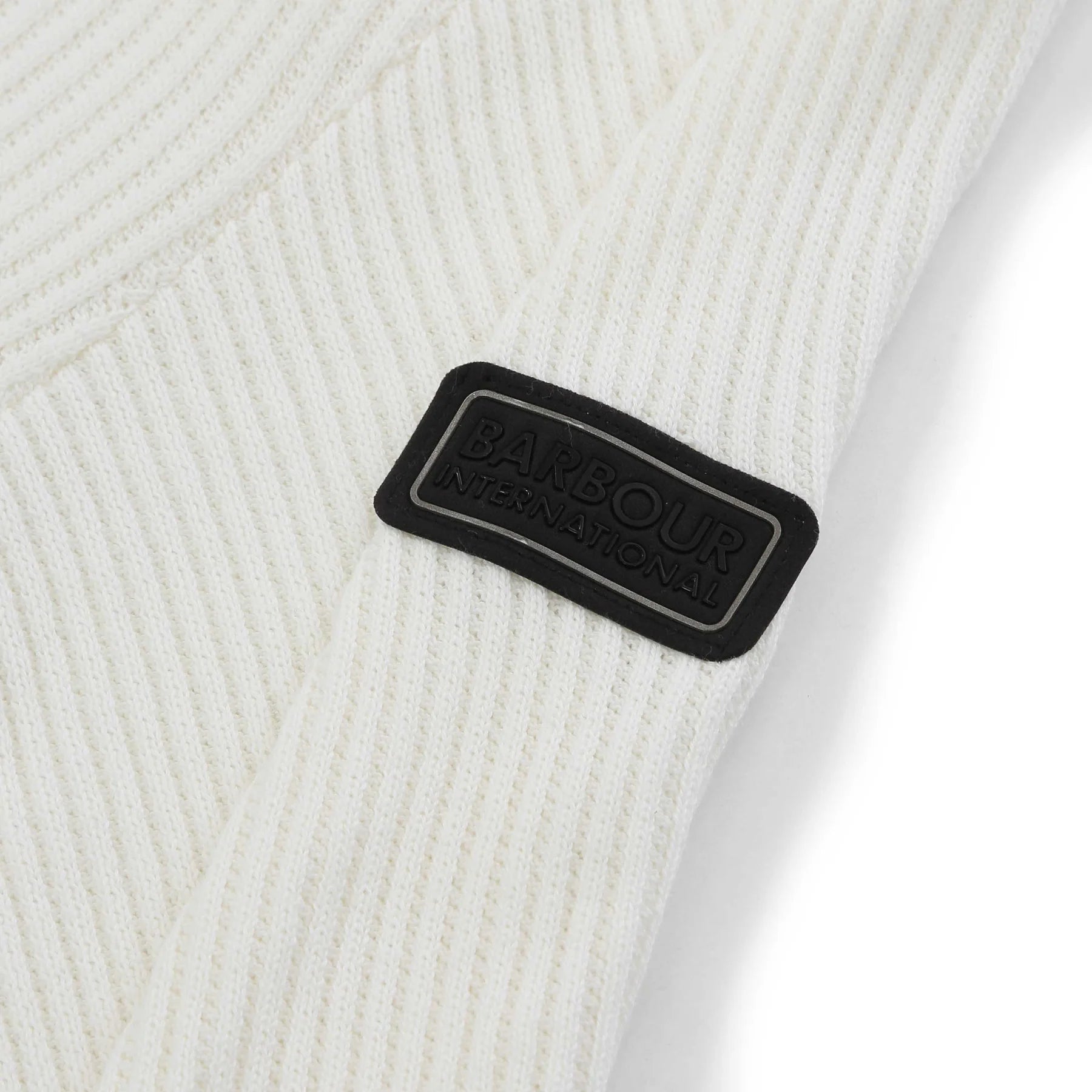 Barbour Dune Funnel Neck Knitwear in Whisper White. The Barbour Dune funnel neck knitwear offers a contemporary twist on classic knitwear. Crafted from breathable cotton for warmth and comfort, it’s perfect for effortless cold-weather layering. Diagonal ribbed design while the Barbour logo completes the look with signature style.