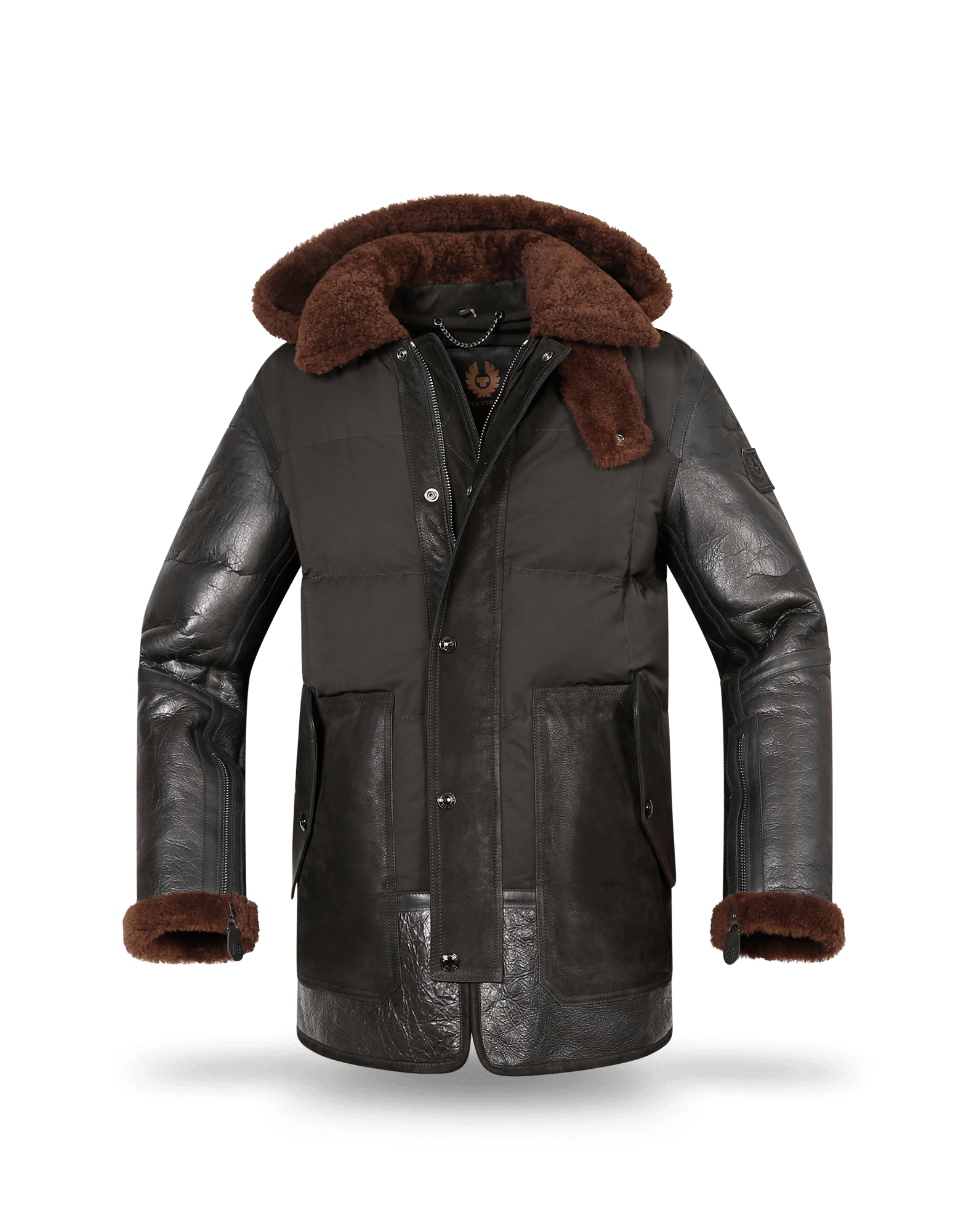 Ideal for bad weather. The Belstaff Alpine Parka is a modern coat for cold weather and is reminiscent of traditional Belstaff models with its leather panels and lambskin collar and hood. The down-filled main section provides sufficient warmth in low temperatures.