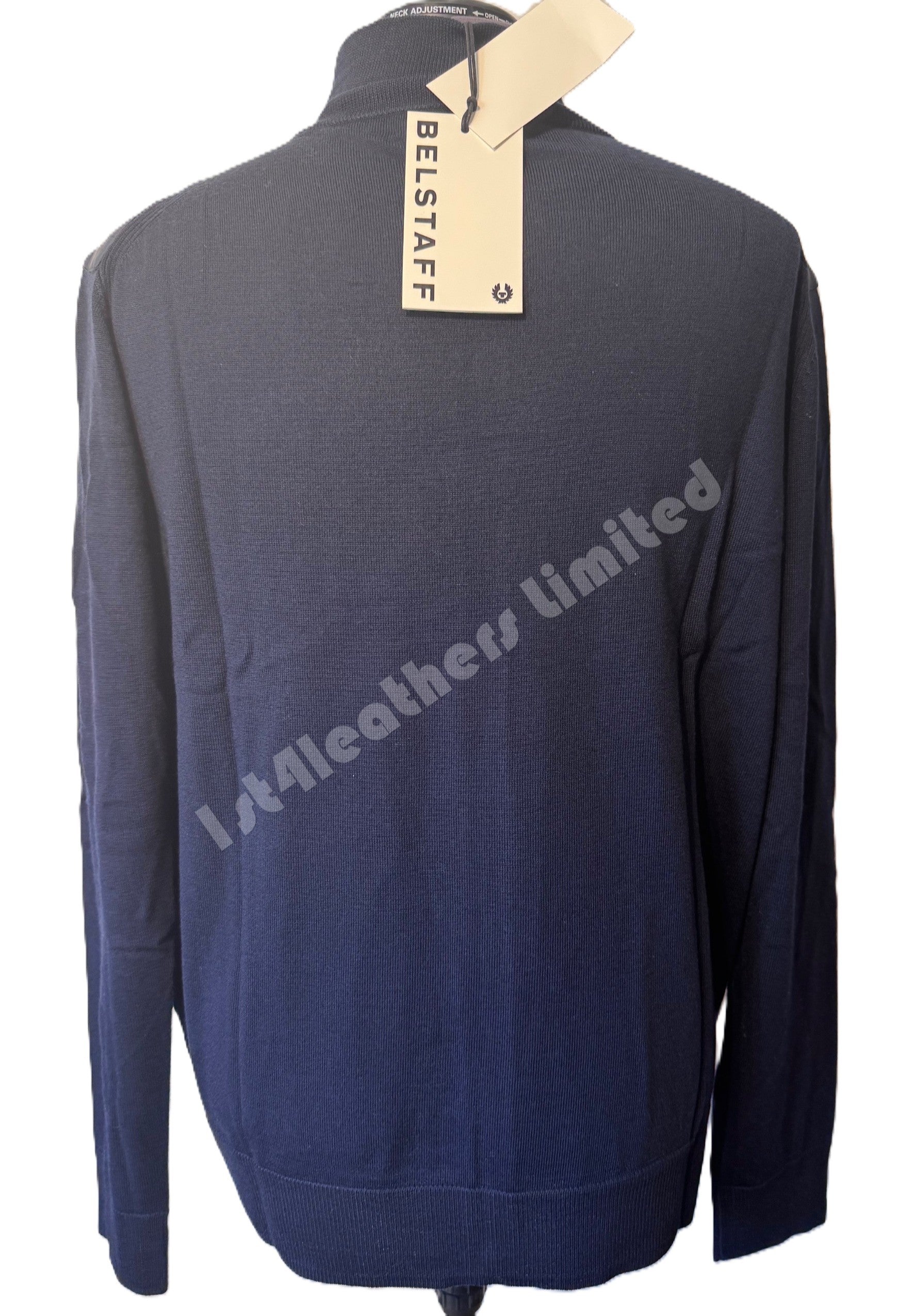 BELSTAFF KELBROOK MIXED MEDIA ZIPPED CARDIGAN JUMPER WASHED NAVY RRP £275 BNWT