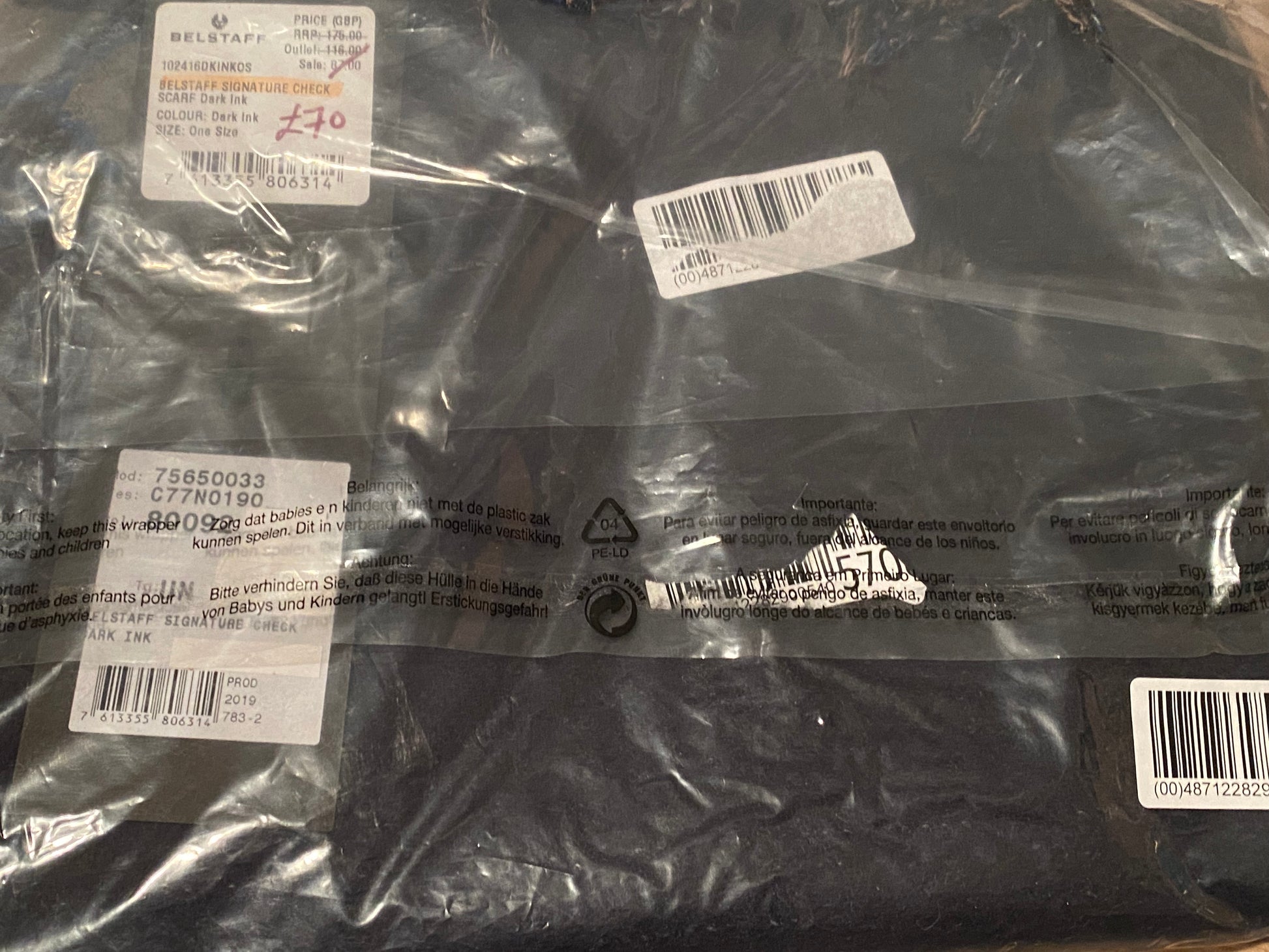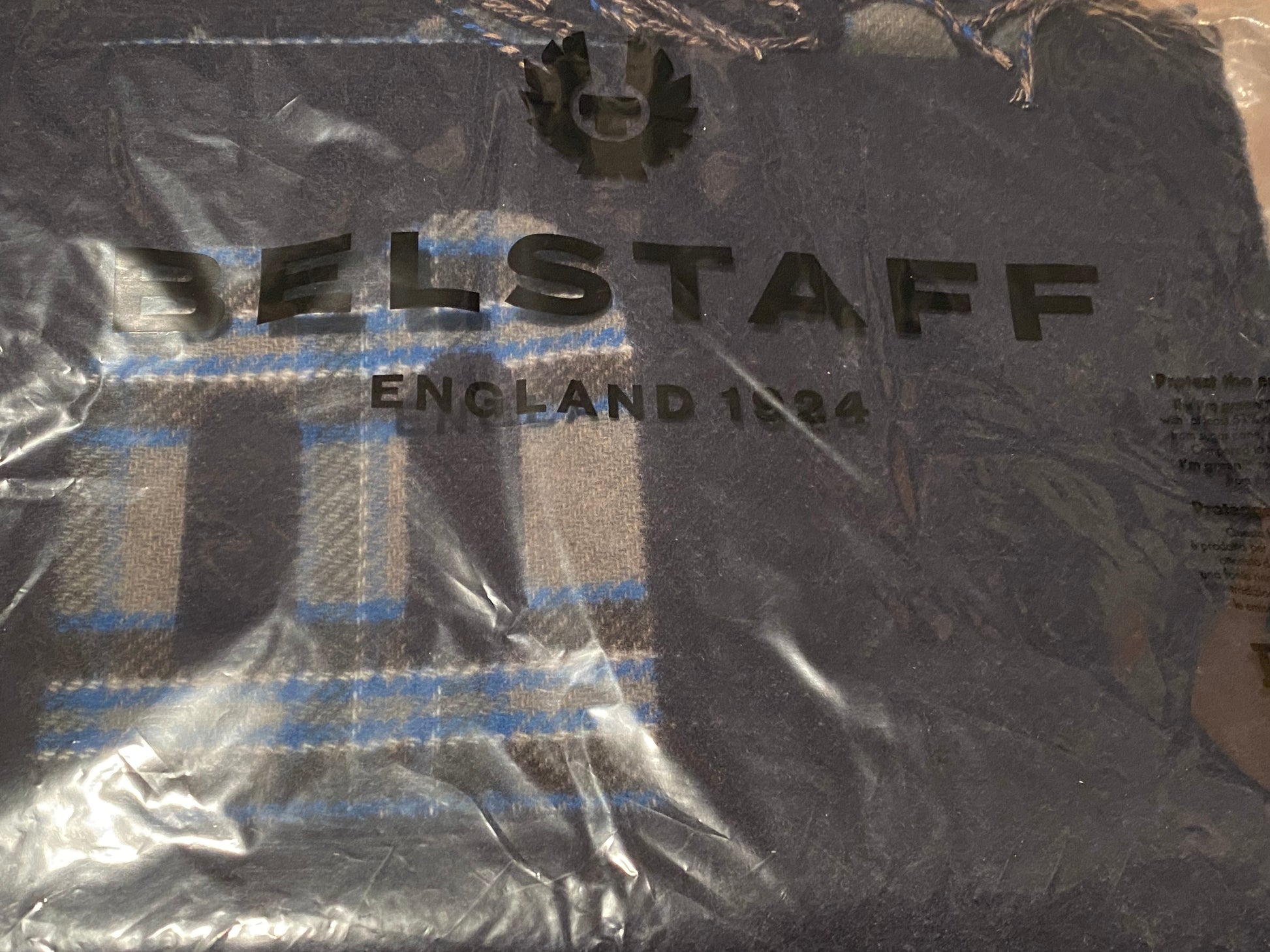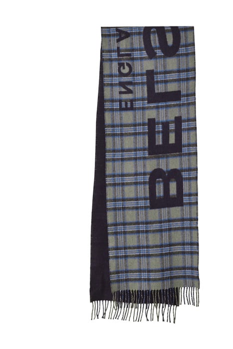 BELSTAFF SIGNATURE CHECK WOOL SCARF BLUE RRP £160 BNWT