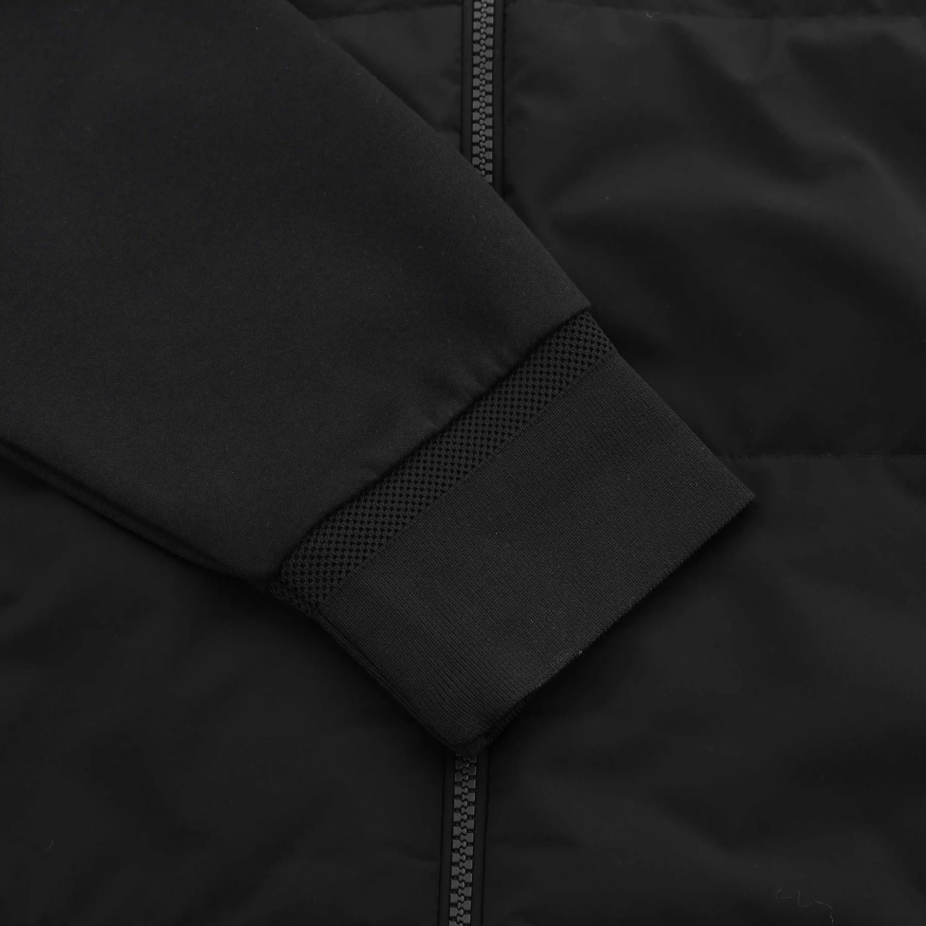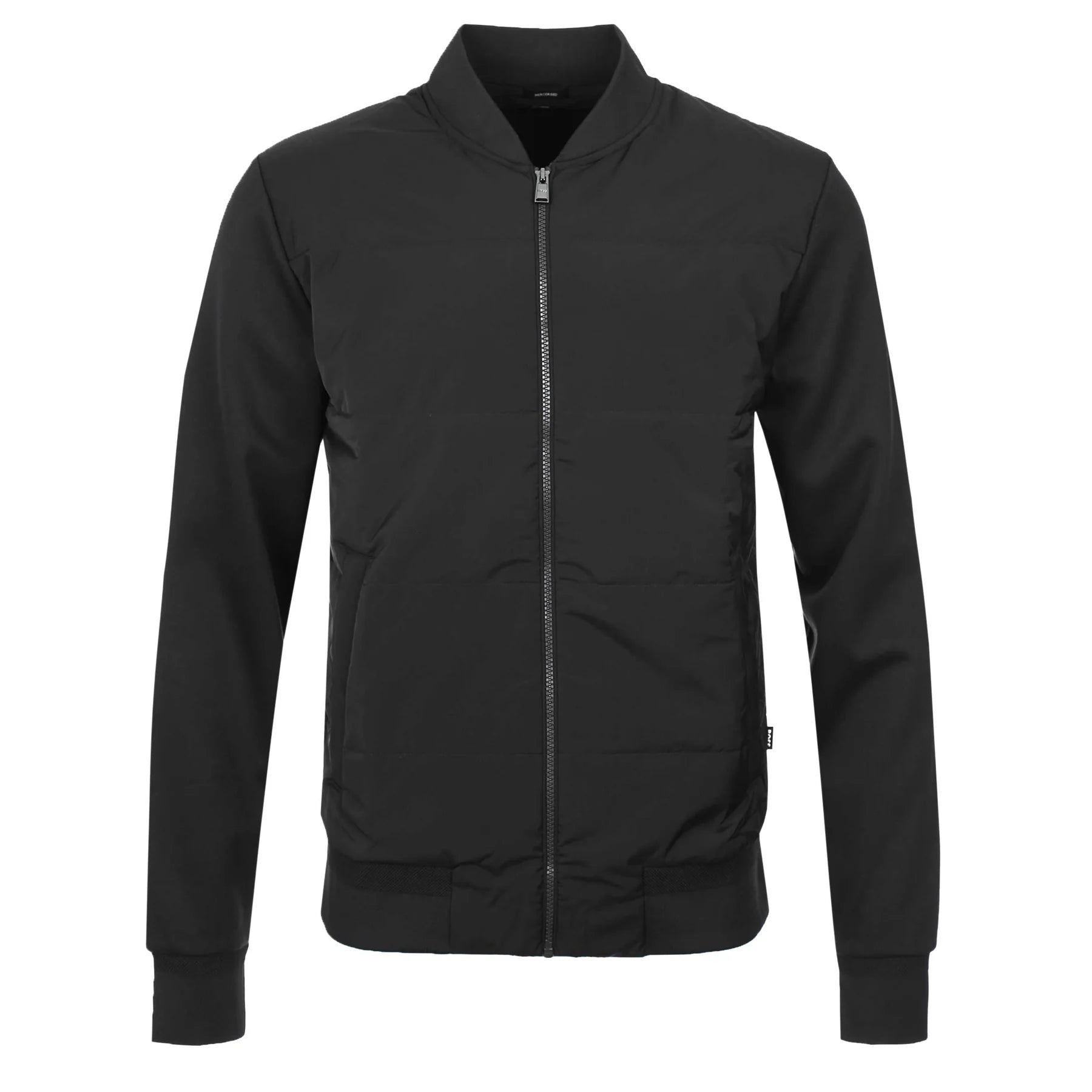 BOSS H Skiles 100 Sweatshirt in Black. A full front zip fastening placket. lightly padded front panel design. Ribbed bomber style collar. Textured rib design on the sleeve cuffs and waistband. Two press stud entry pockets and a BOSS metal logo stud on the upper left sleeve.