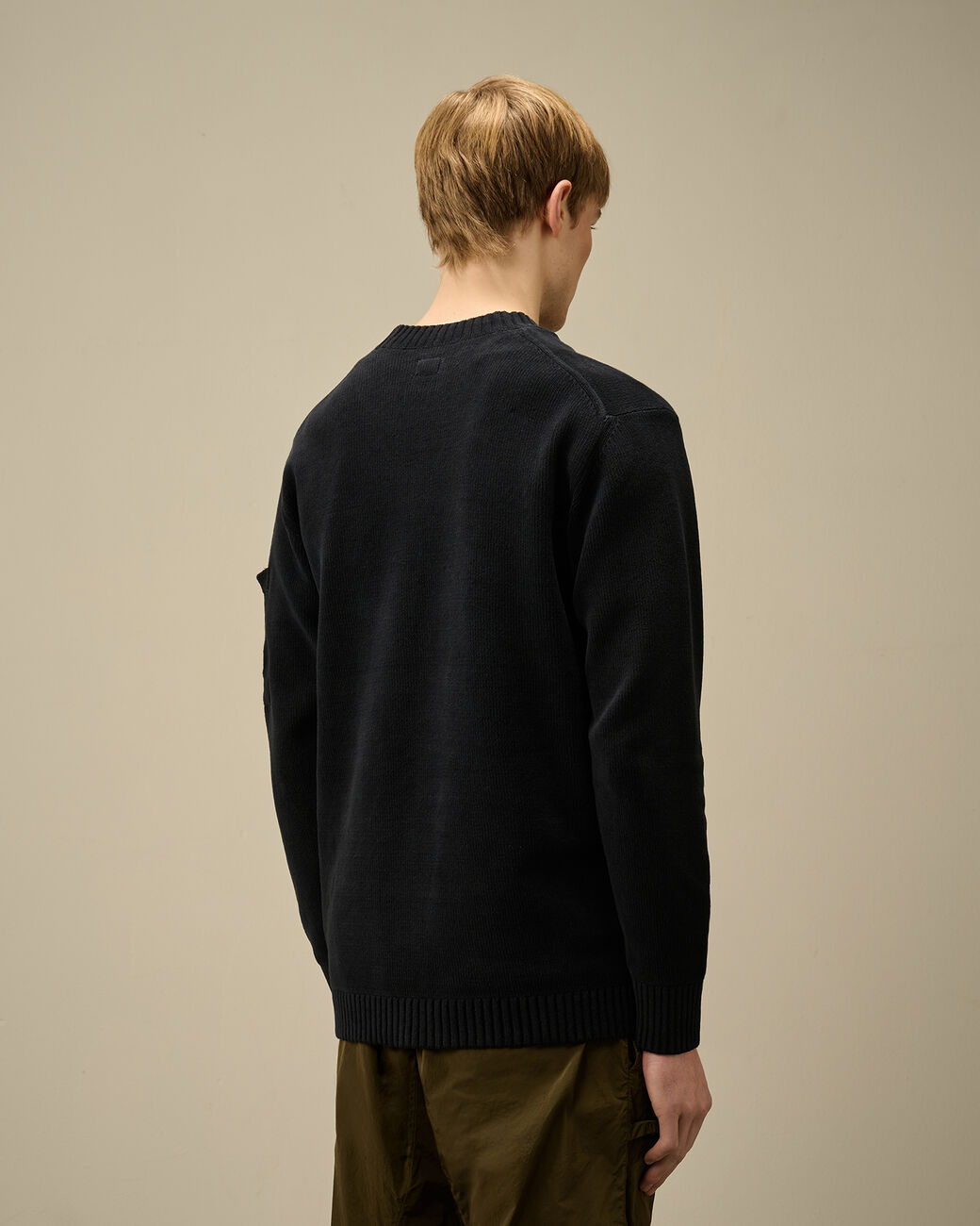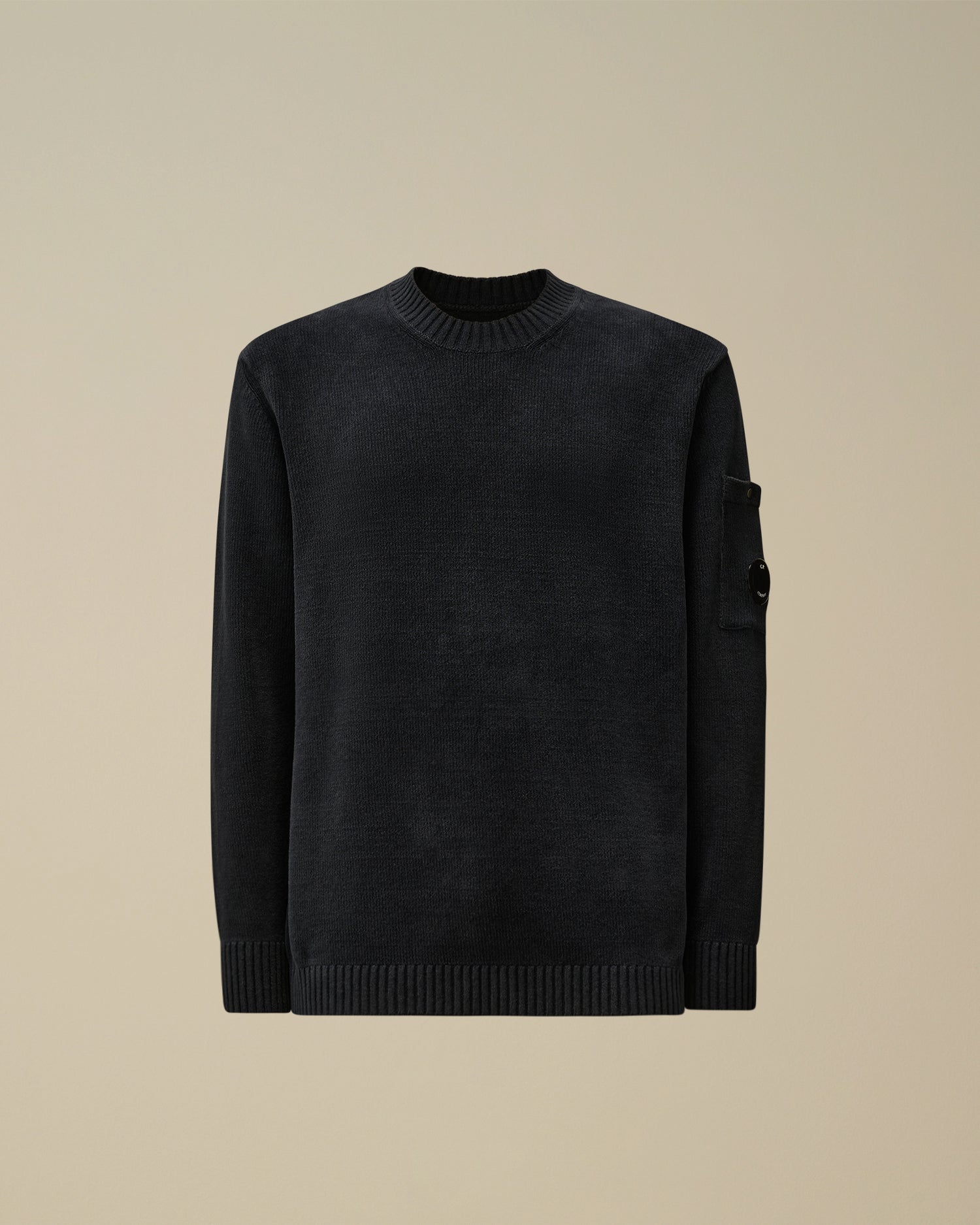 Crewneck knit crafted in garment dyed chenille cotton, featuring Lens detail. Gauge 7. Regular fit.