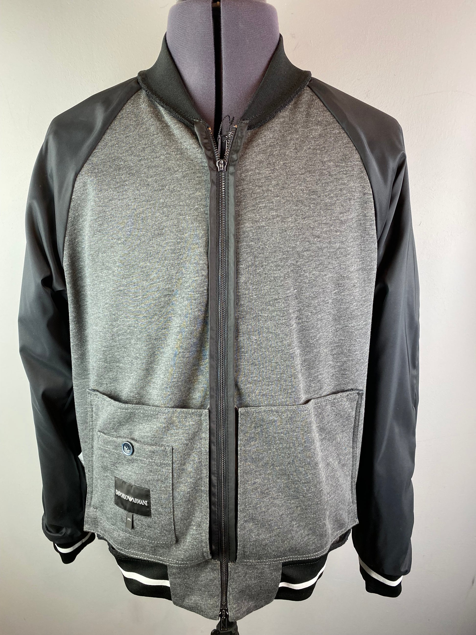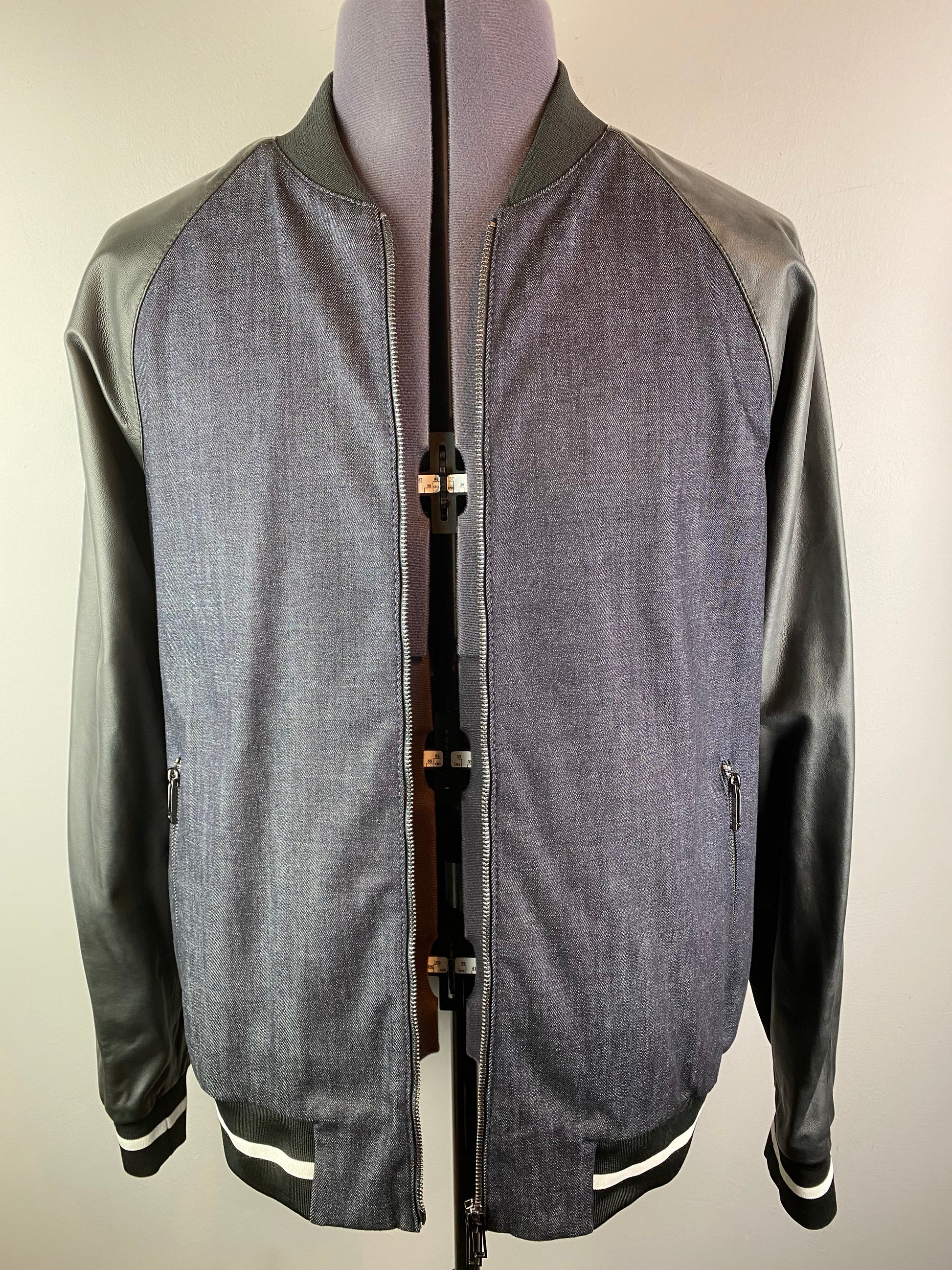 EMPORIO ARMANI BLUE DENIM & LEATHER EAGLE CREST BOMBER JACKET 3XL RRP £495 BNWT