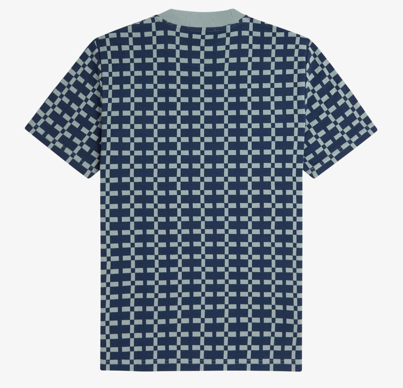 Casual, sports-inspired silhouettes like our crew neck t-shirts are a cornerstone of the Fred Perry brand. We like to keep things fresh and unexpected with a dressed-up rework every now and again. Designed with a geometric print that channels the squares, lines, and crosses of sport, this version has a deep neck trim for a high-end finish. Always built for function, constantly refreshed for expression.
