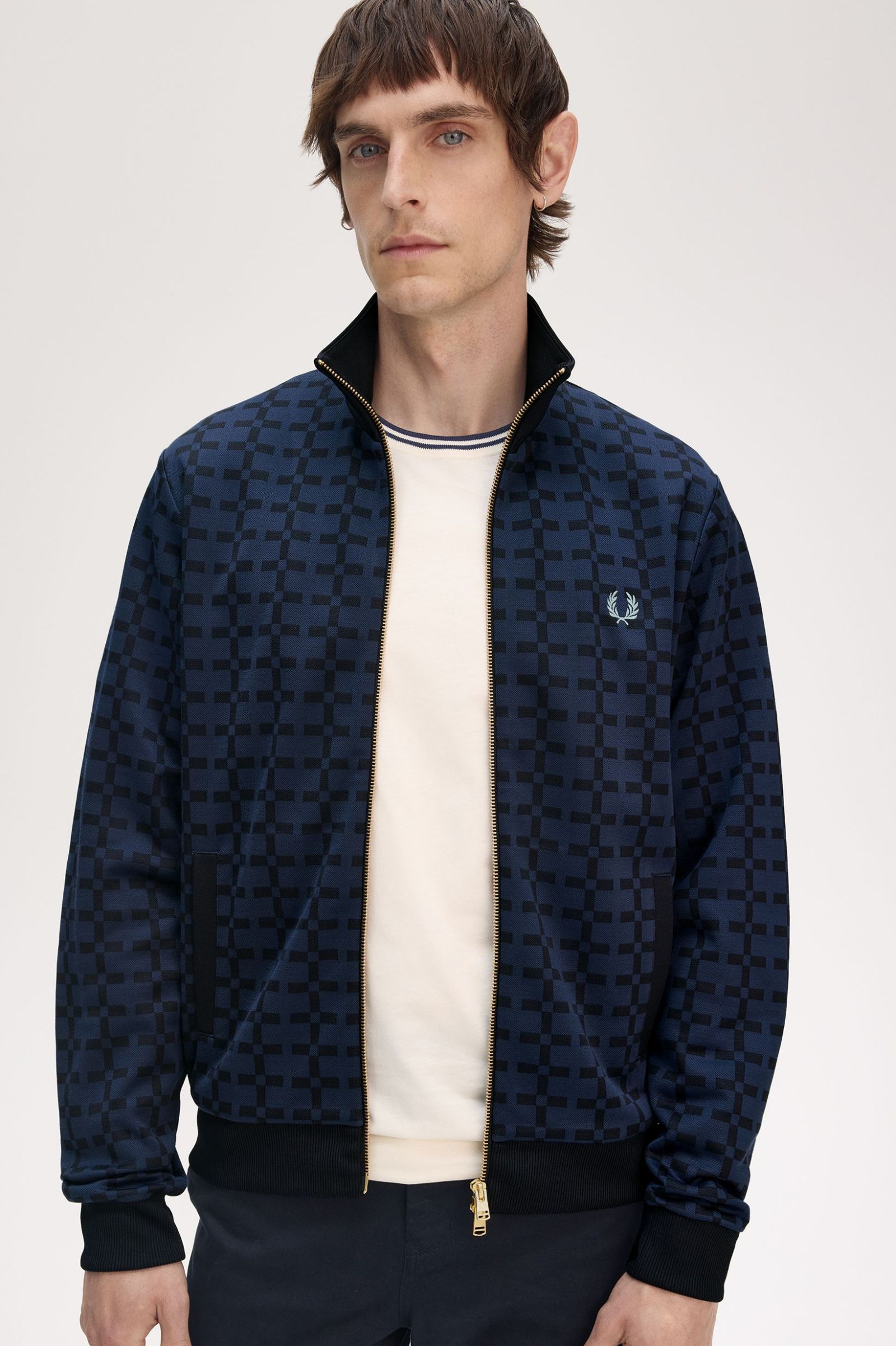 FRED PERRY JACQUARD GEOMETRIC PRINT TRACK JACKET NAVY BLUE 2XL RRP £175 BNWT