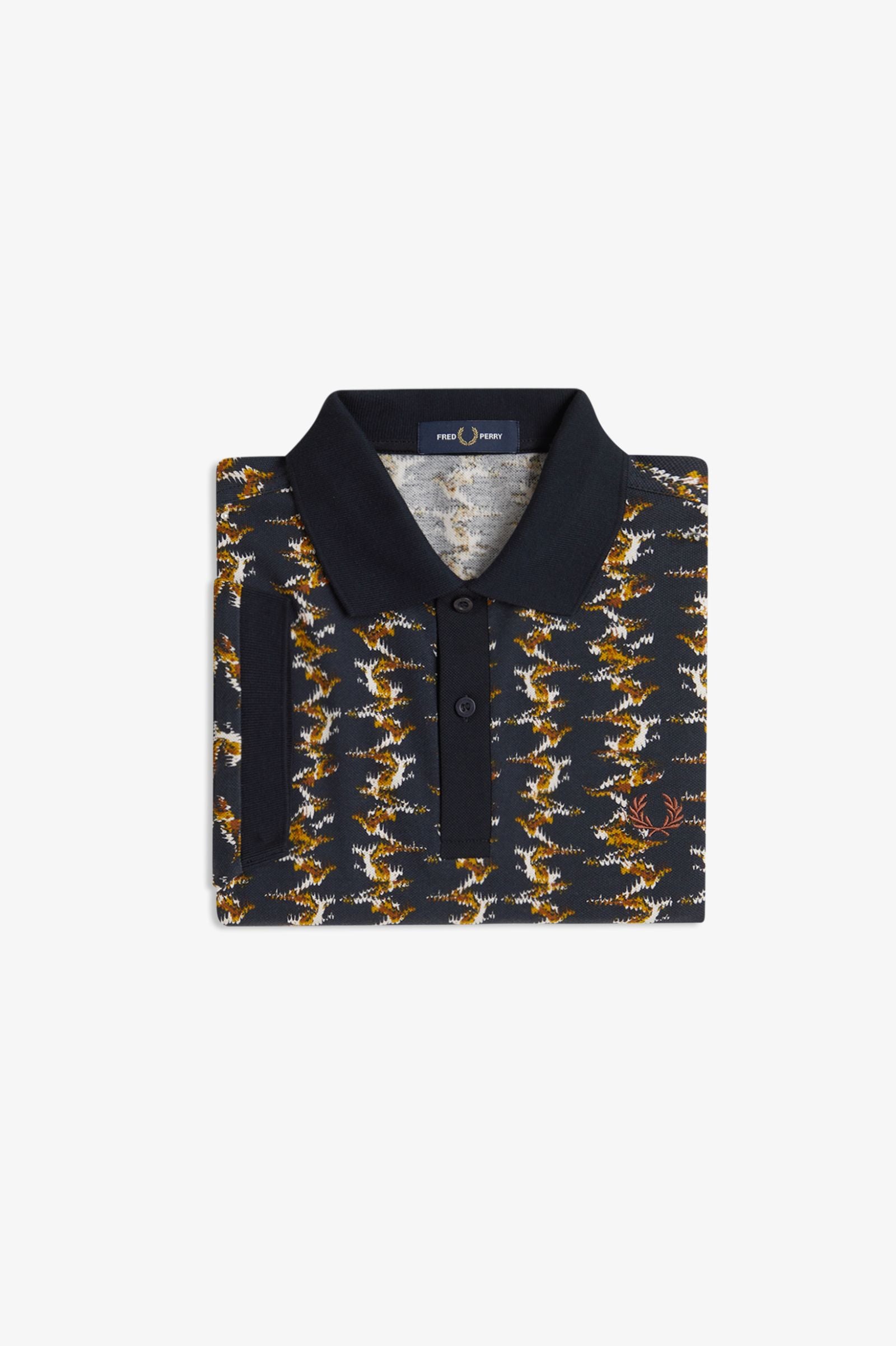 FRED PERRY PIQUE COTTON GRAPHIC PRINT POLO SHIRT NAVY 2XL RRP £95 BNWT