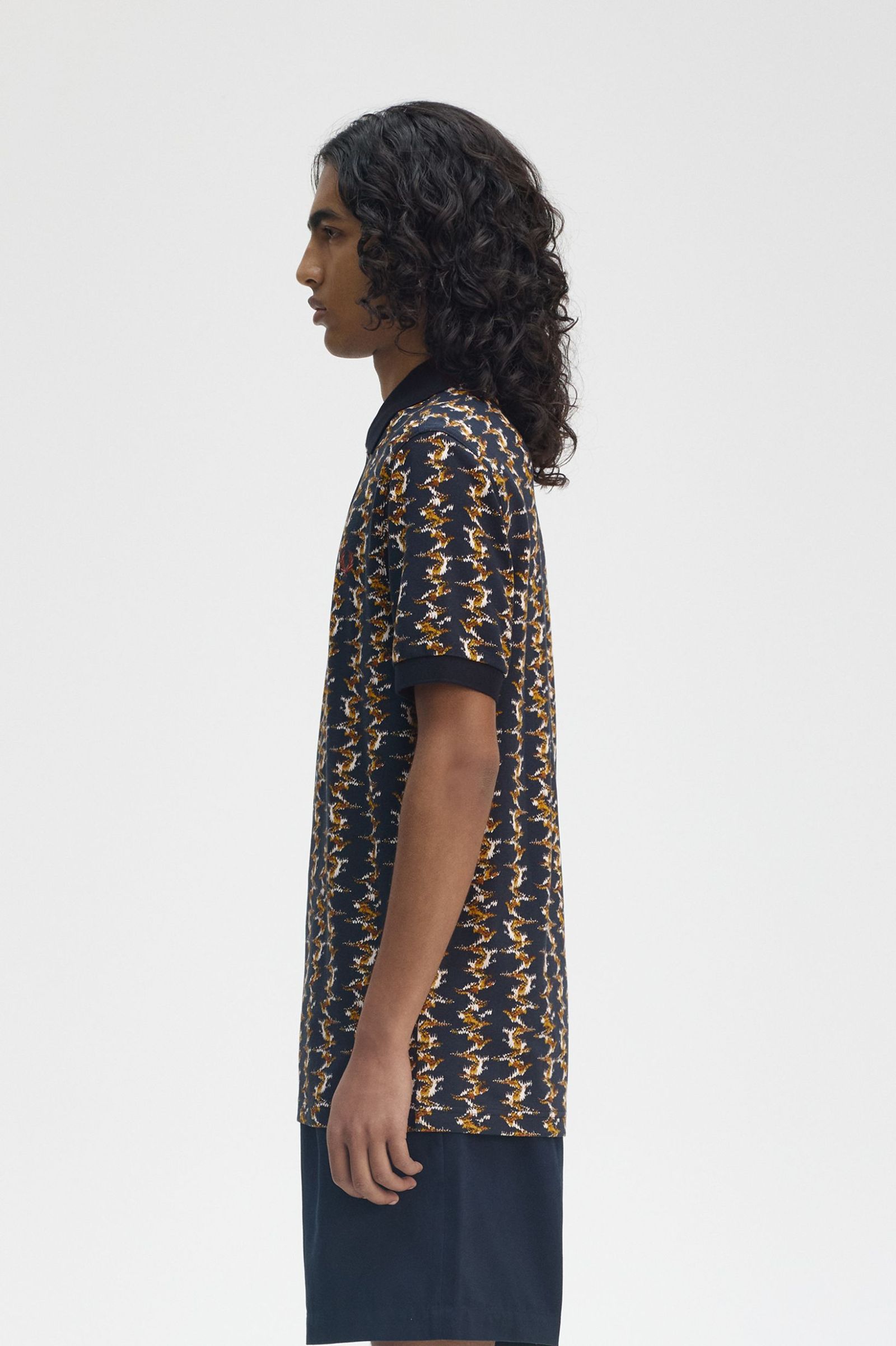 Combining heritage sportswear with contemporary street style, the Fred Perry Men's M9836 Graphic Print Polo Shirt in Navy is a standout essential. Crafted from 100% soft cotton, this regular-fit polo offers a breathable, lightweight feel with a polished yet relaxed silhouette. The ribbed collar and classic button placket ensure a structured look, while the bold graphic print brings a modern edge. Finished with the iconic Fred Perry Laurel Wreath embroidery, this polo is a statement-making piece that embodies the brand’s commitment to style, quality, and individuality.