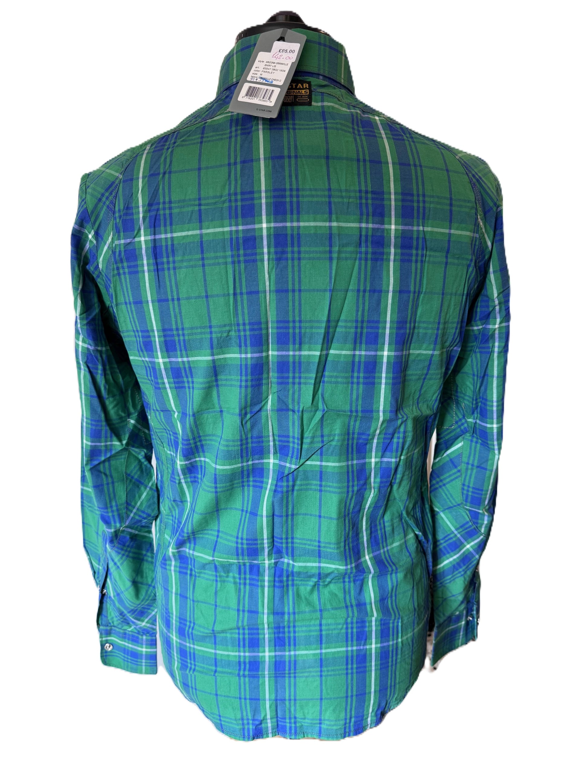 G STAR RAW GRANVILLE GREEN & BLUE CHECK LONG SLEEVE SHIRT SIZE S RRP £85 BNWT