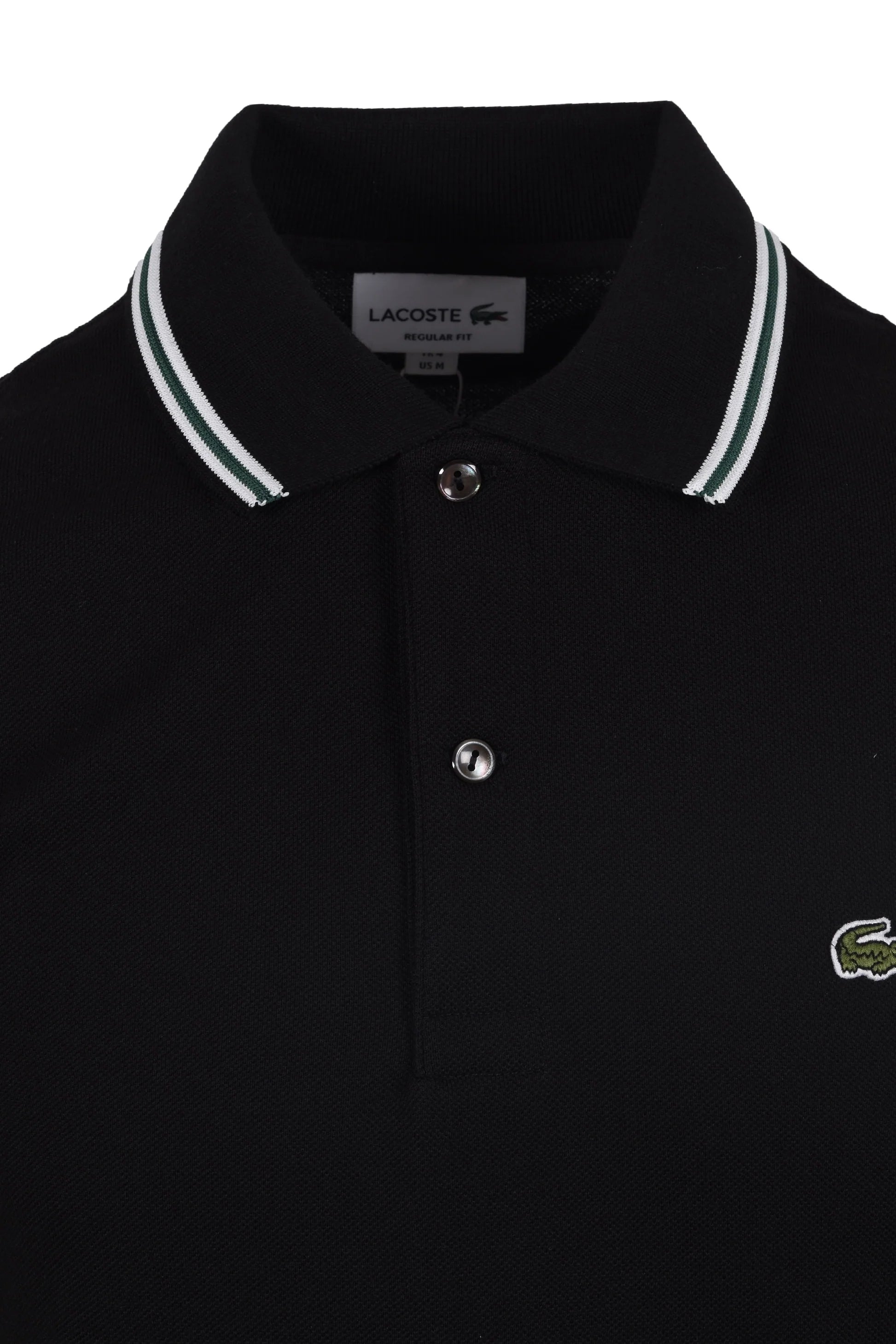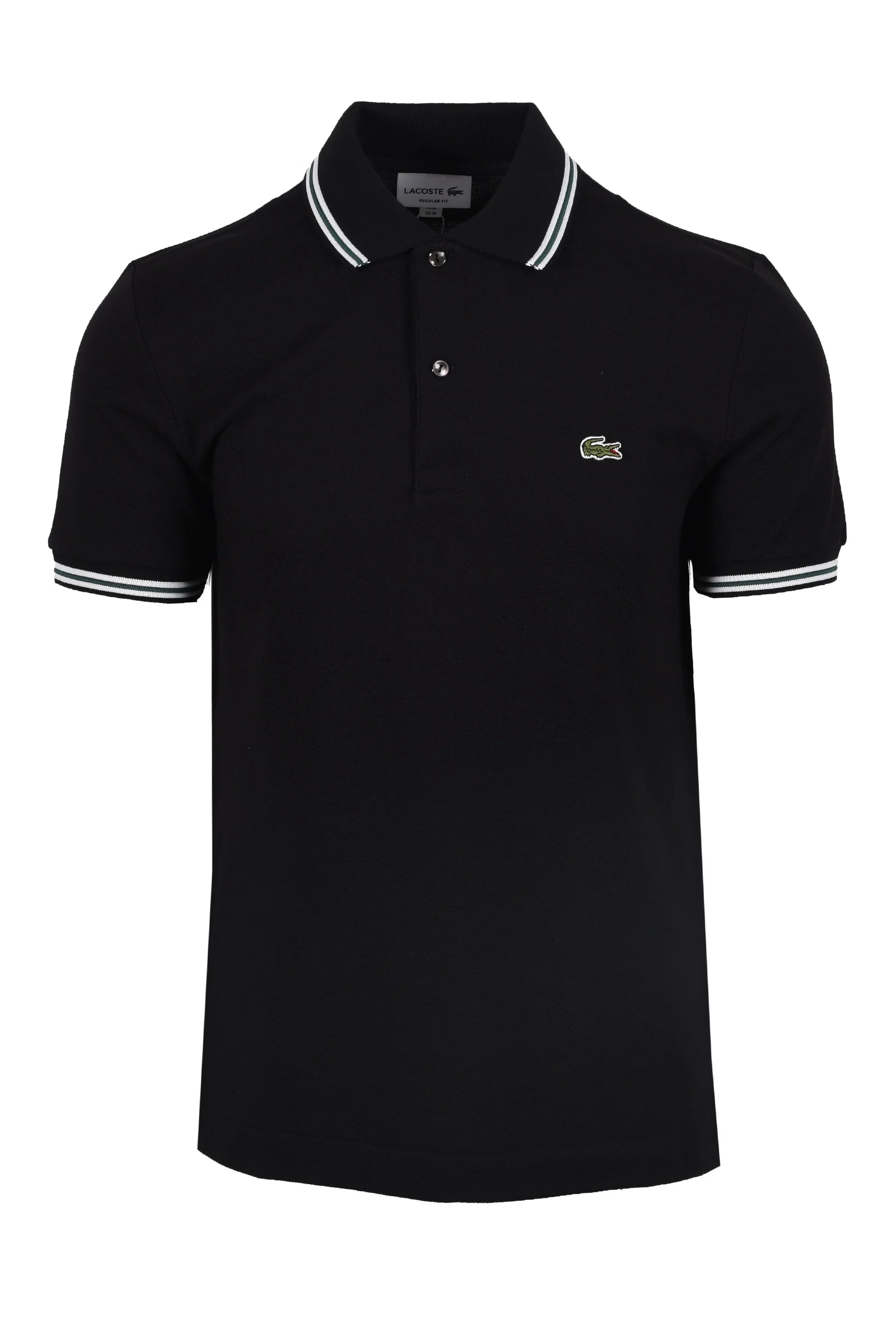 LACOSTE TIPPED PIQUE COTTON POLO SHIRT BLACK RRP £105 BNWT