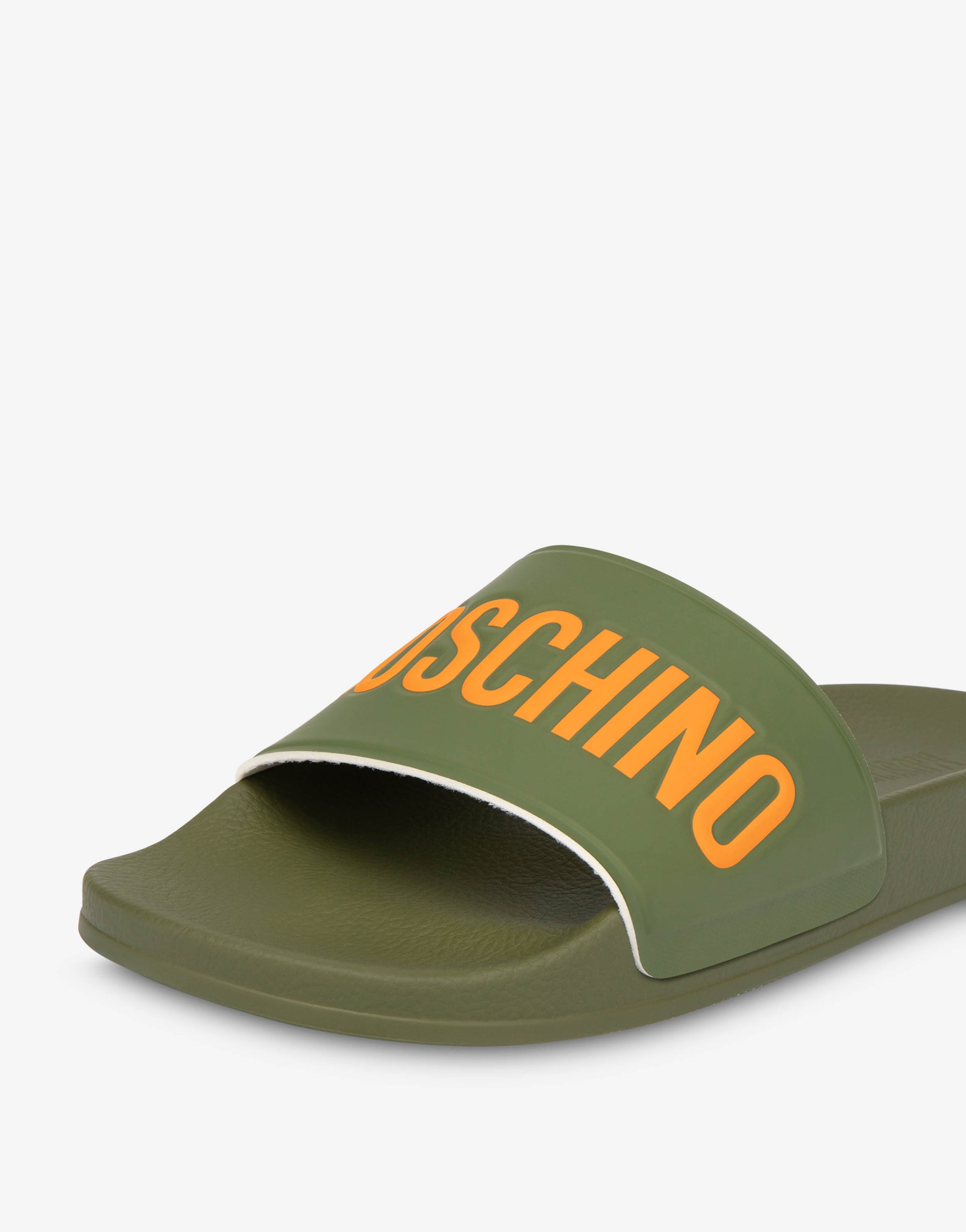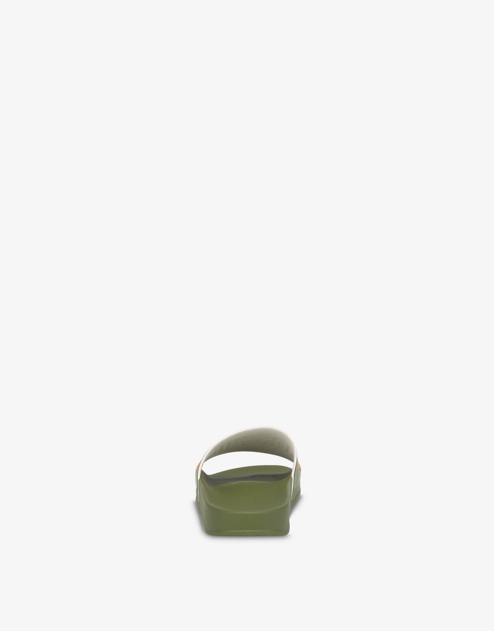 MOSCHINO MILITARY GREEN PVC STRAP SLIDES POOL BEACH UK 9 RRP £110 BRAND NEW