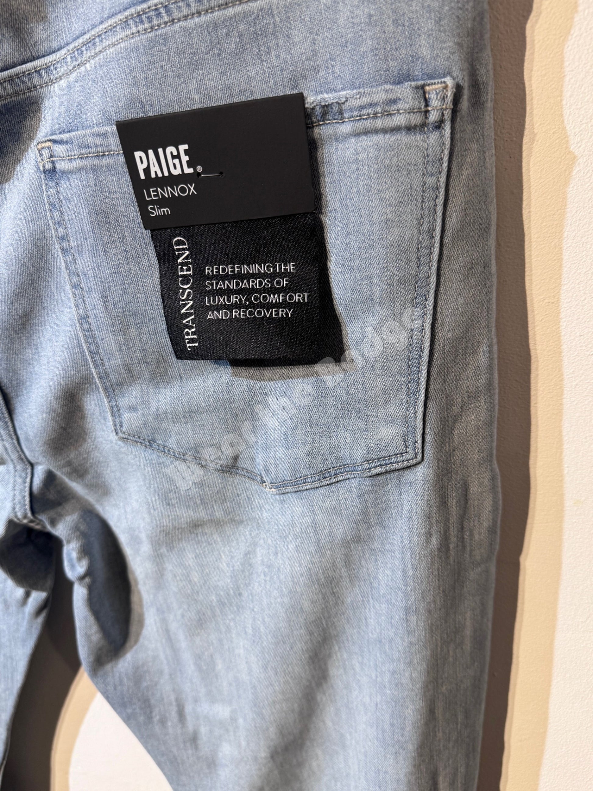 Lennox is our slim cut jean. Made with our TRANSCEND denim, this pair has an extra soft and stretchy fit. In the light Renfro wash, this five-pocket jean is expertly finished with lasered whiskers, soft fading, and tacking detail.
