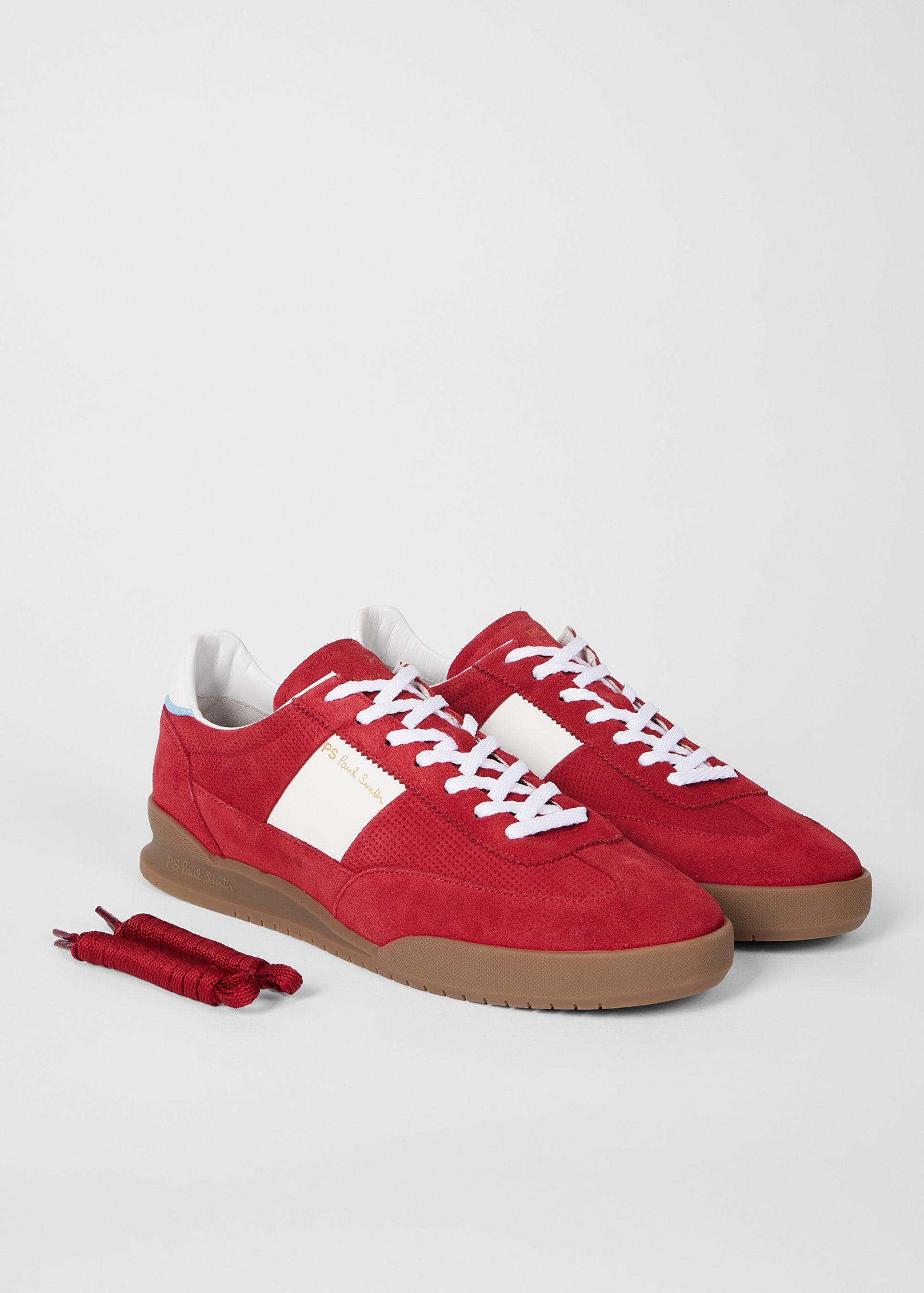 Made in Portugal from premium suede leather uppers, these red 'Dover' trainers are ideal for adding a pop of colour to a muted outfit. Complete with gum rubber soles, these trainers are finished with tonal insoles and spare yellow laces.