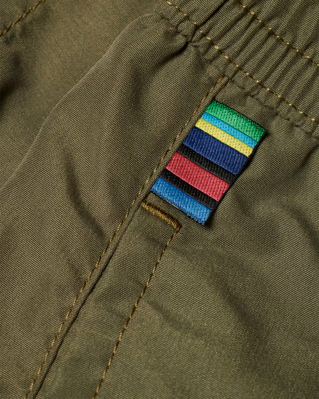 Ideal for your next beach getaway, these washed khaki green swim shorts are made from 100% recycled polyester for a fast-drying finish. Complete with a 'Sports Stripe' drawstring waistband for the perfect fit, these shorts are finished with our classic zebra logo.
