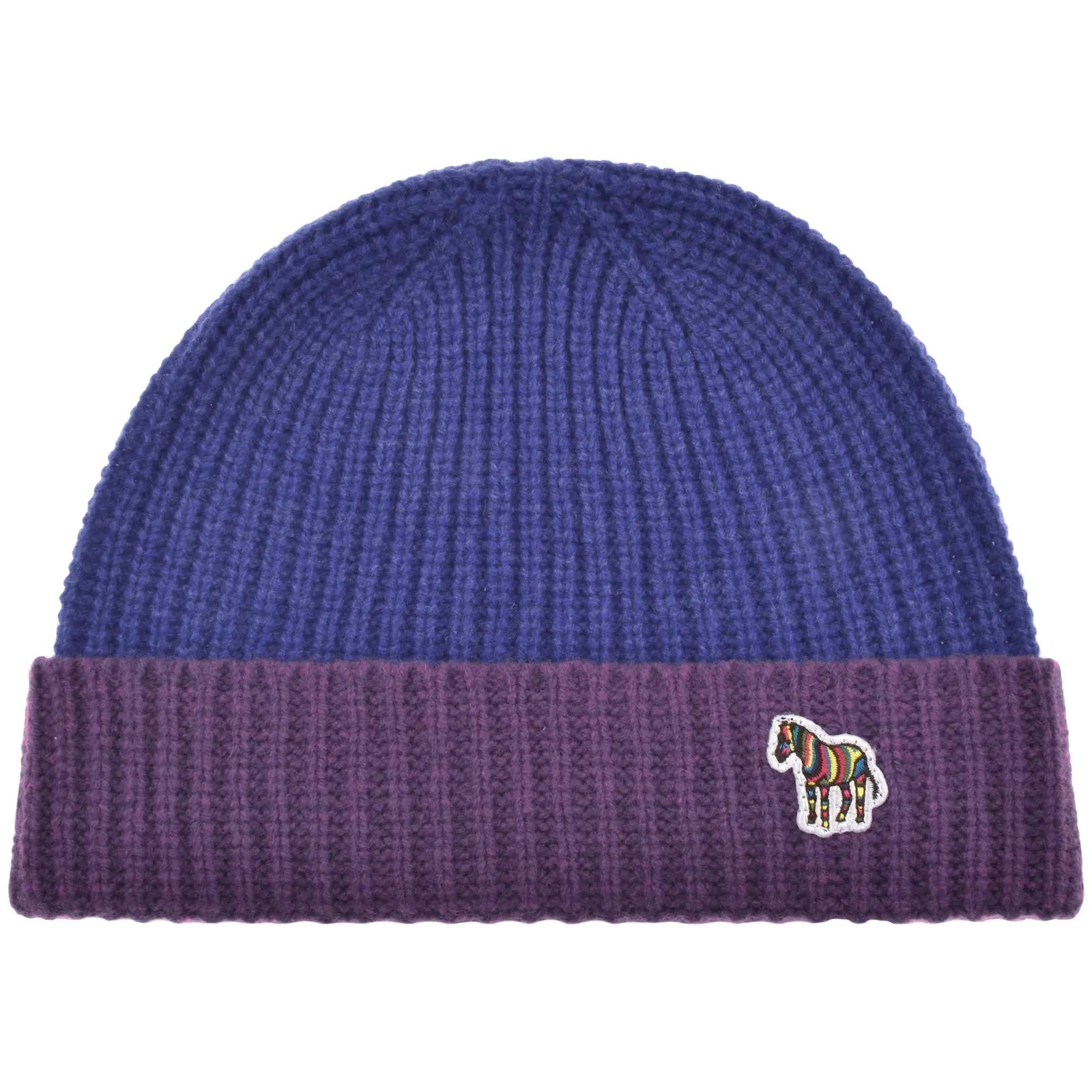 PAUL SMITH ZEBRA LOGO WOOL RIBBED BEANIE HAT BLUE & PURPLE RRP £70 BNWT