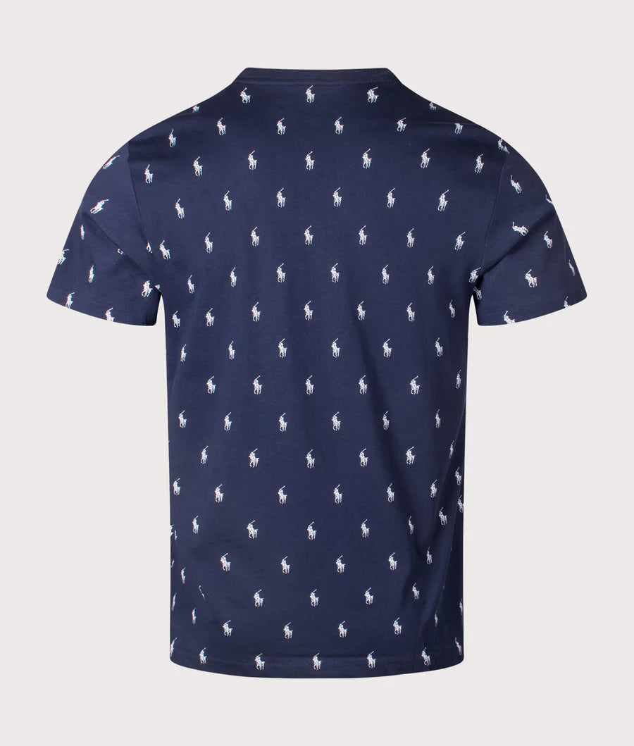 POLO RALPH LAUREN ALLOVER LOGO COTTON LOUNGE T-SHIRT NAVY MEDIUM RRP £60 BNWT