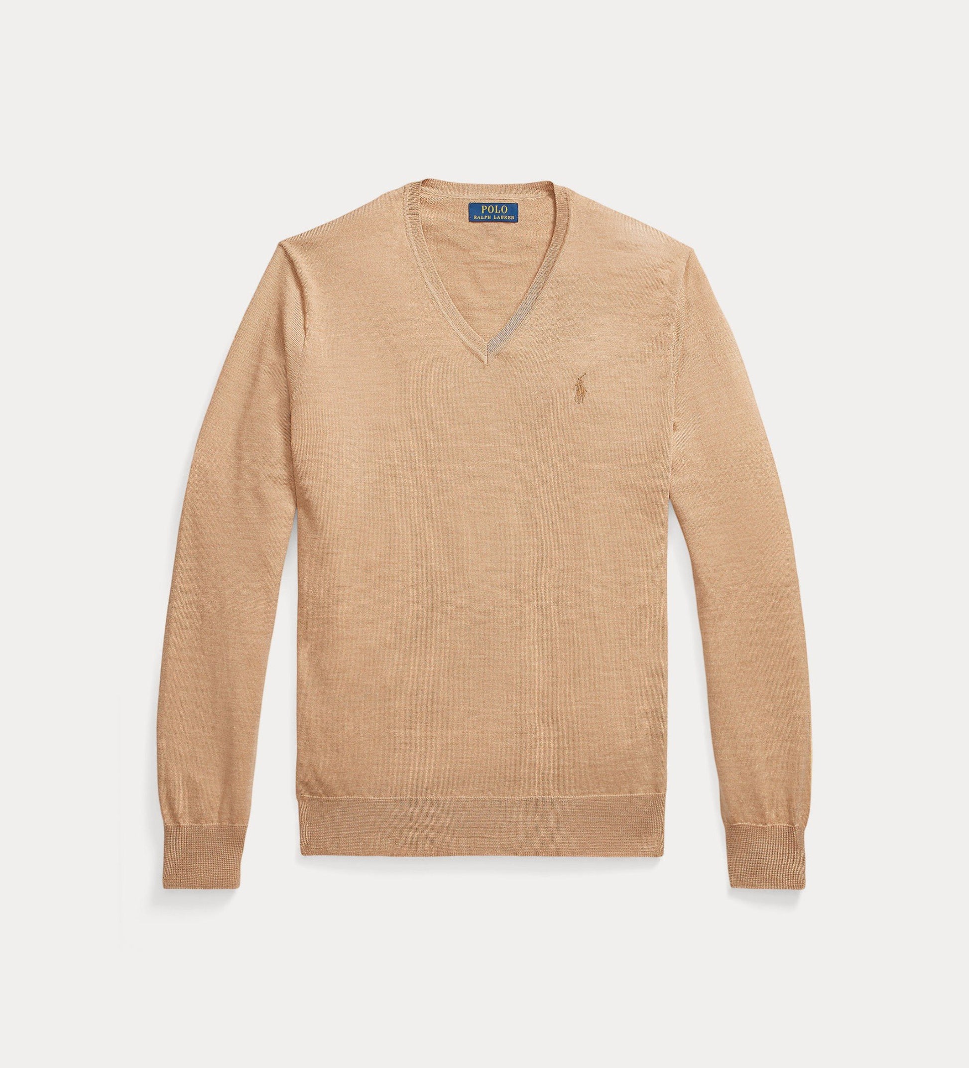 POLO RALPH LAUREN SLIM FIT MERINO WOOL V-NECK JUMPER BEIGE 2XL RRP £129 BNWT