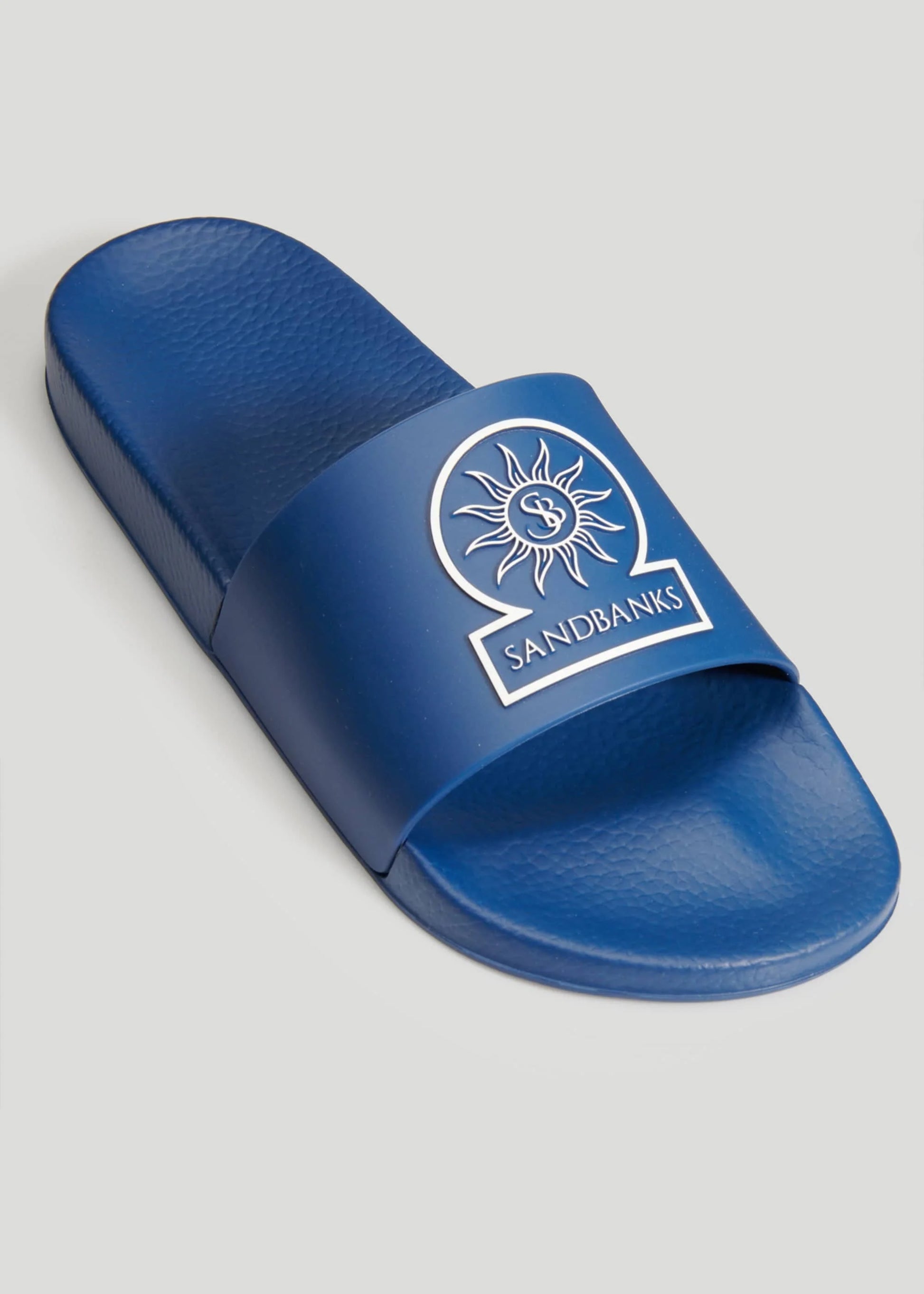 SANDBANKS BADGE LOGO SLIDERS BLUE UK8 RRP £105 BNIB